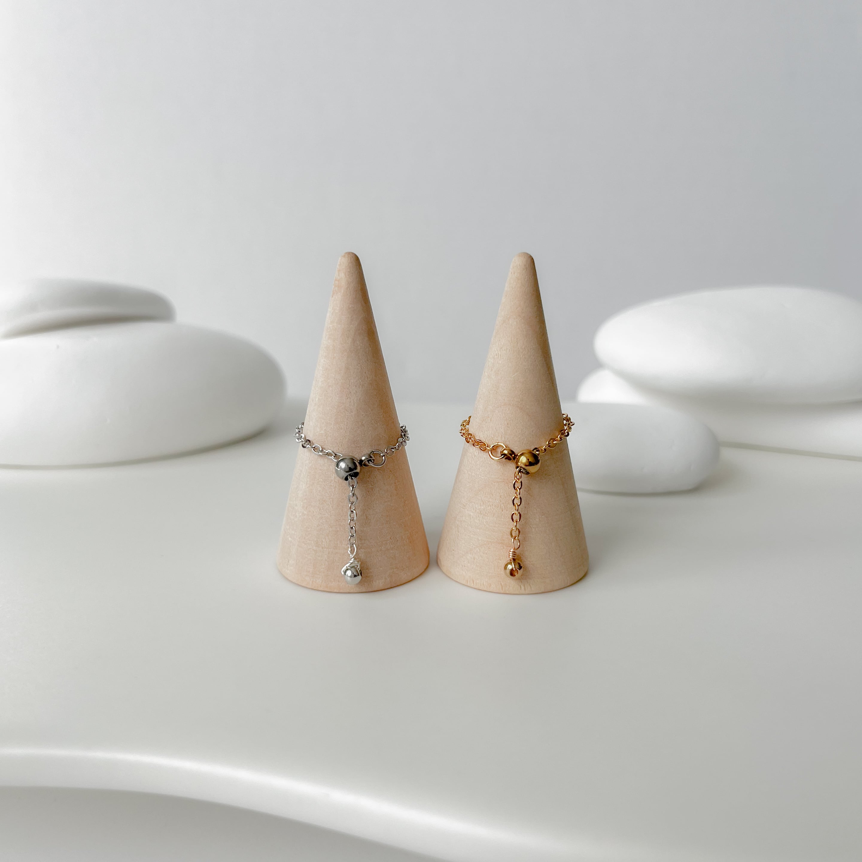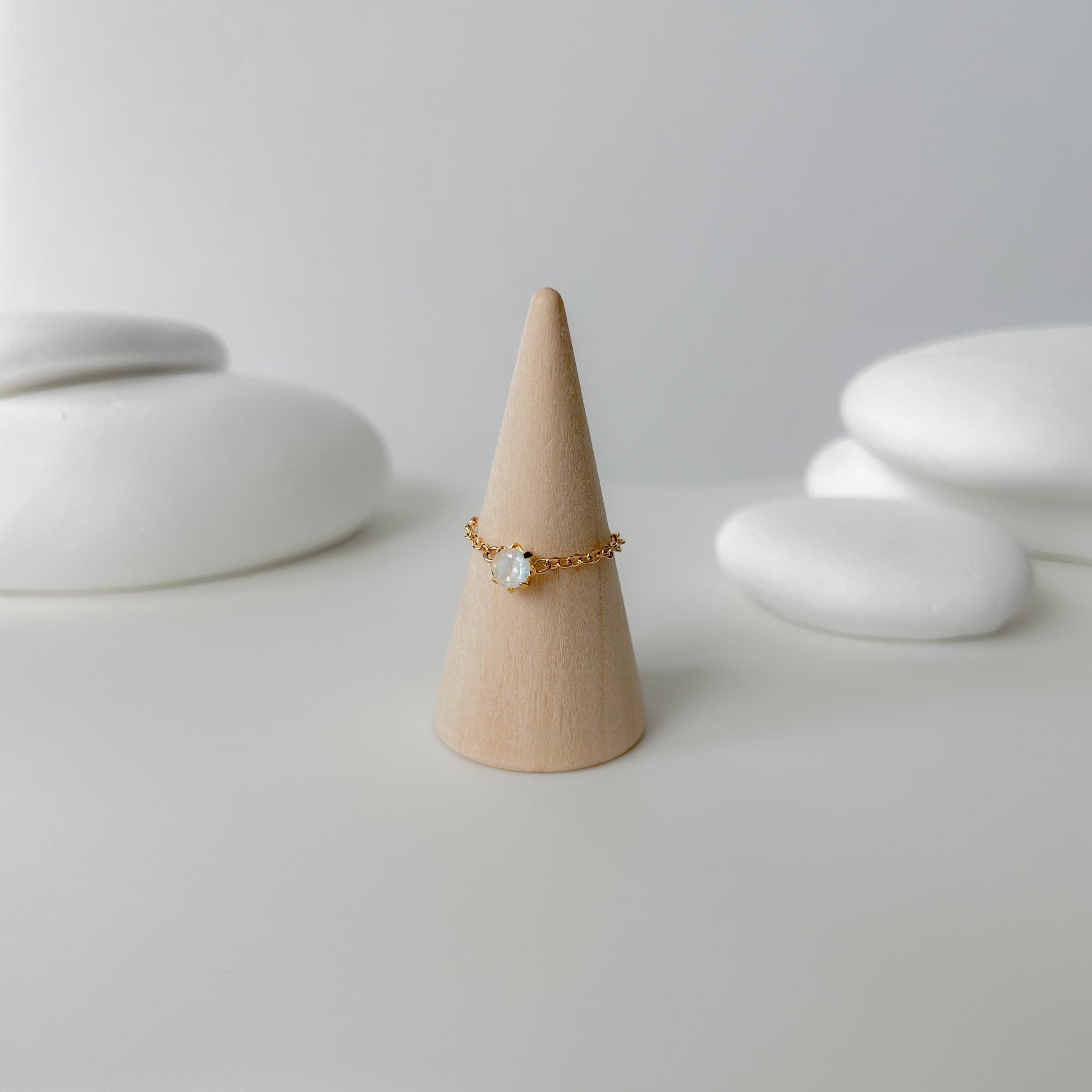 レインボームーンストーンの優しい輝きが魅力のチェーンリング。