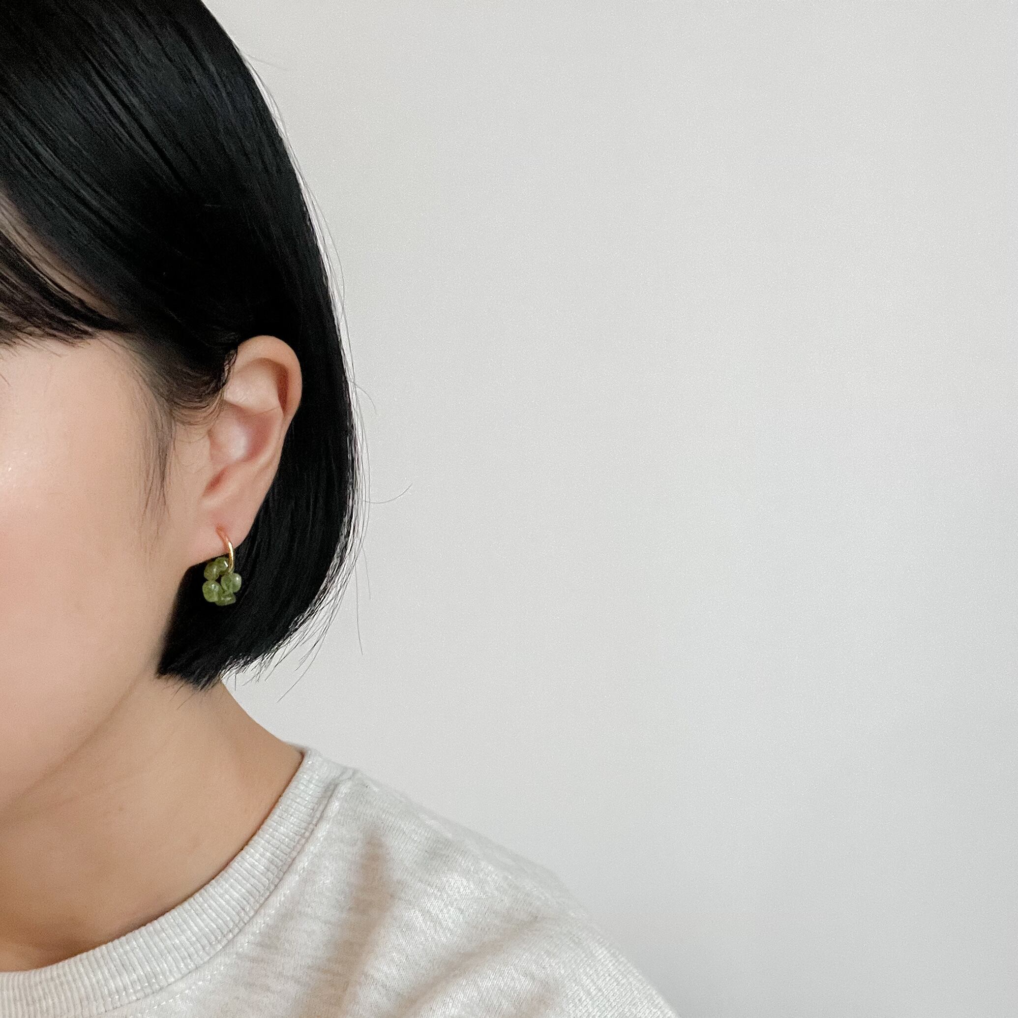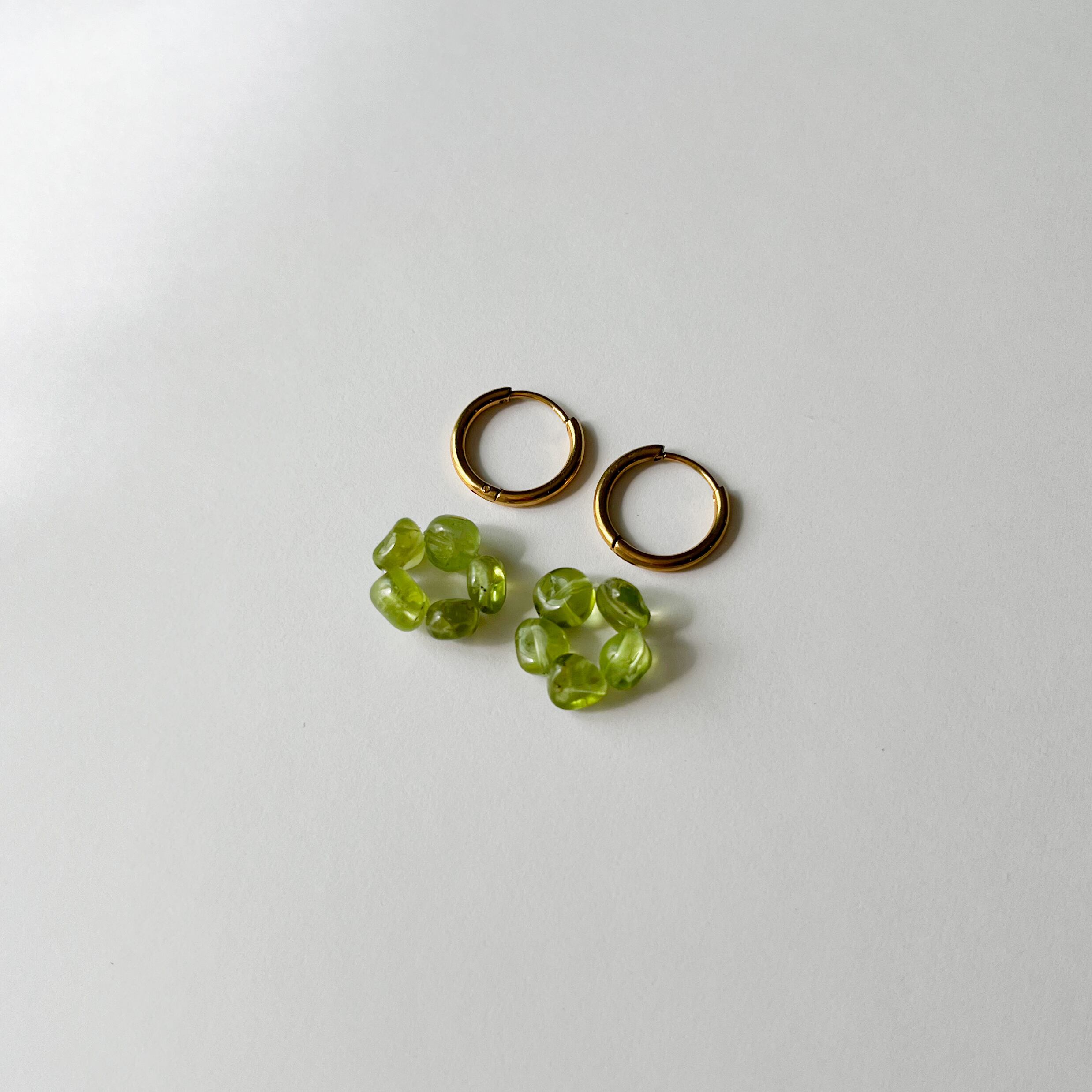 華やかなグリーンが心を惹きつける、ペリドットの天然石を使用したフープピアス。