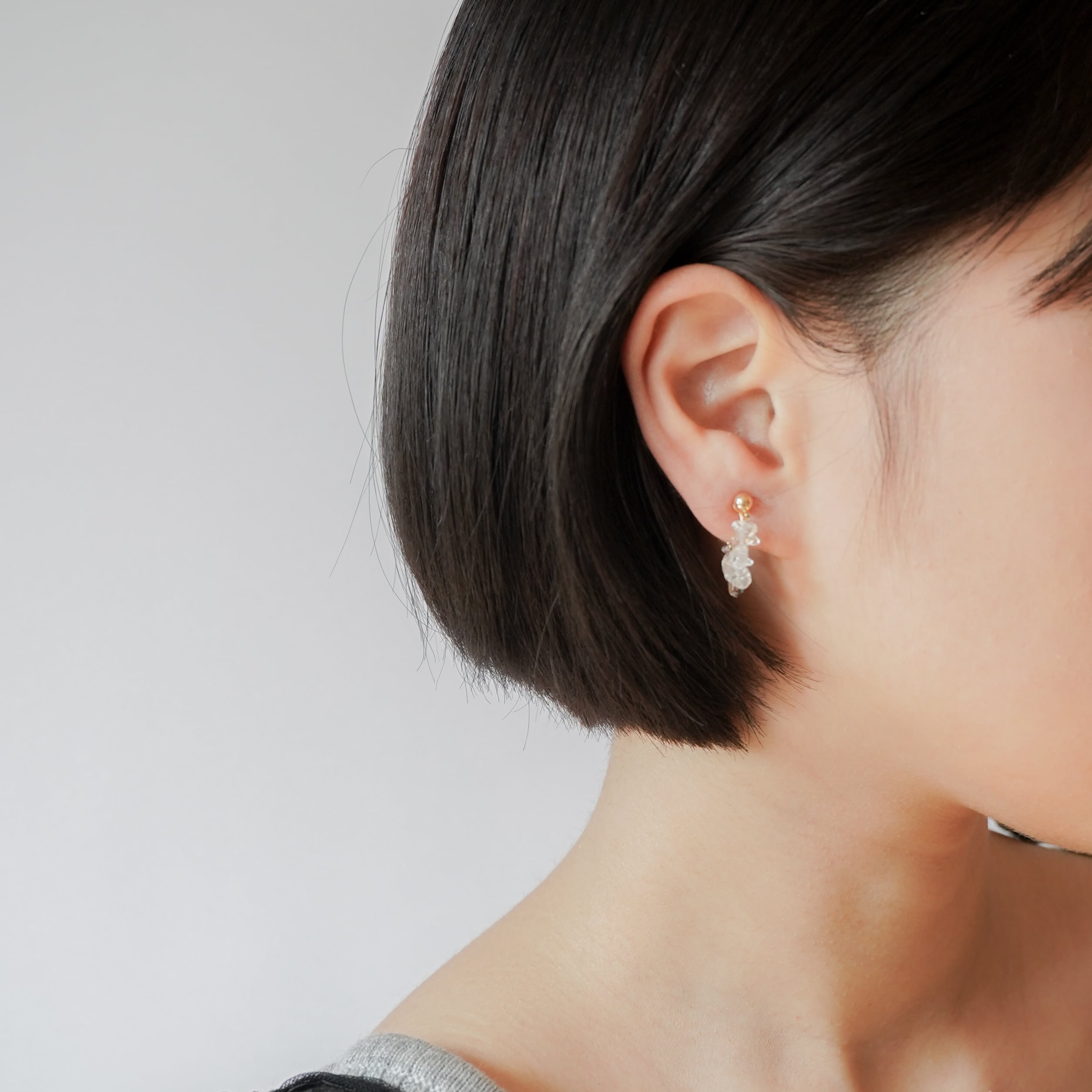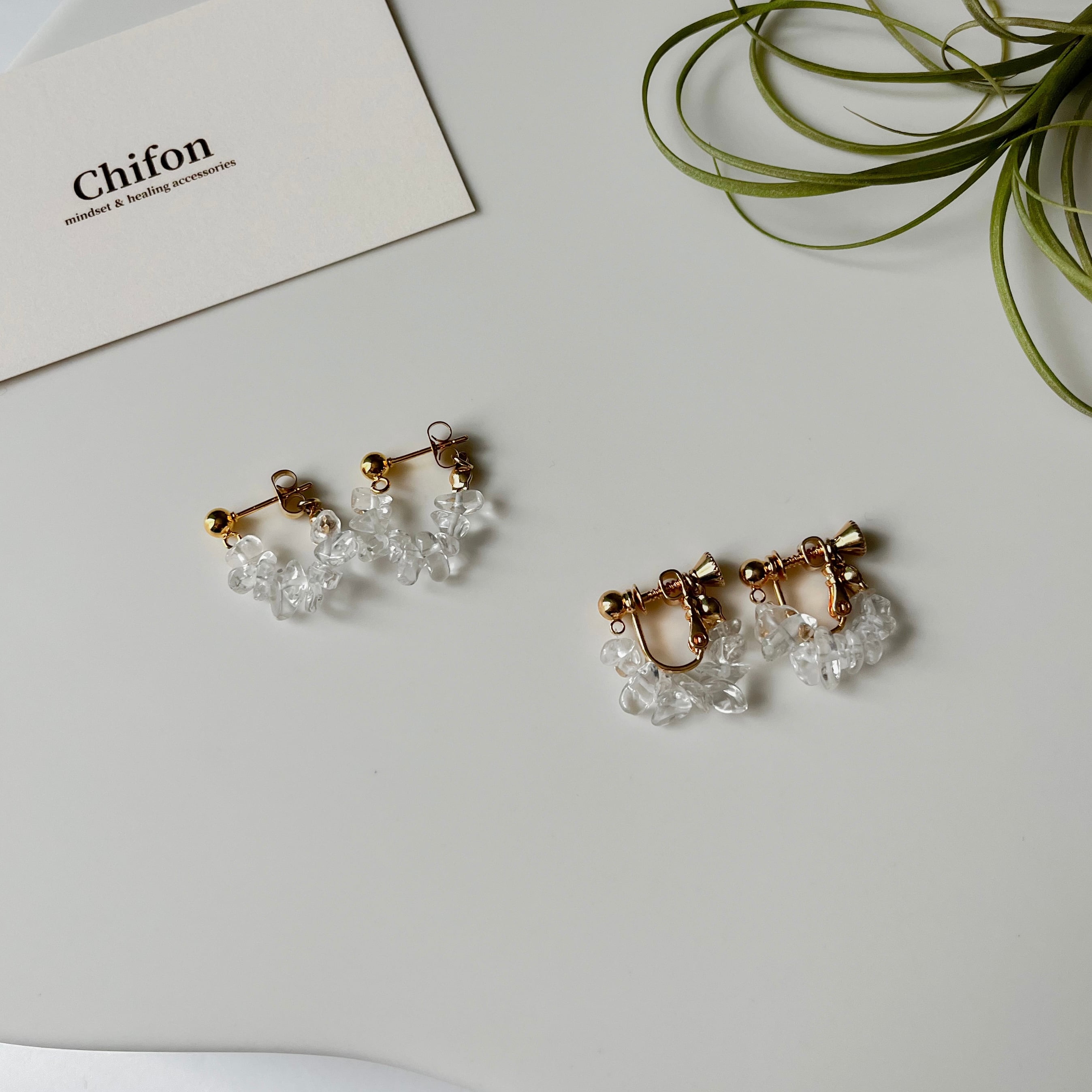 クリアな輝きが心を整えてくれる、クリスタルの天然石を使用したピアス。