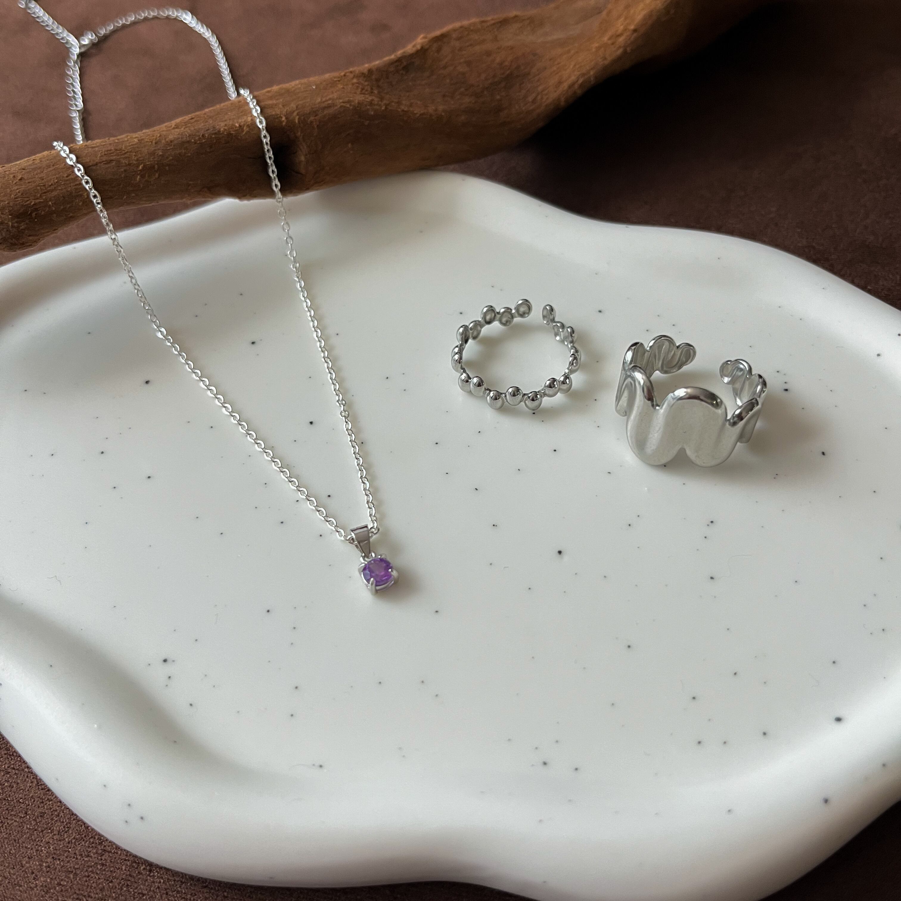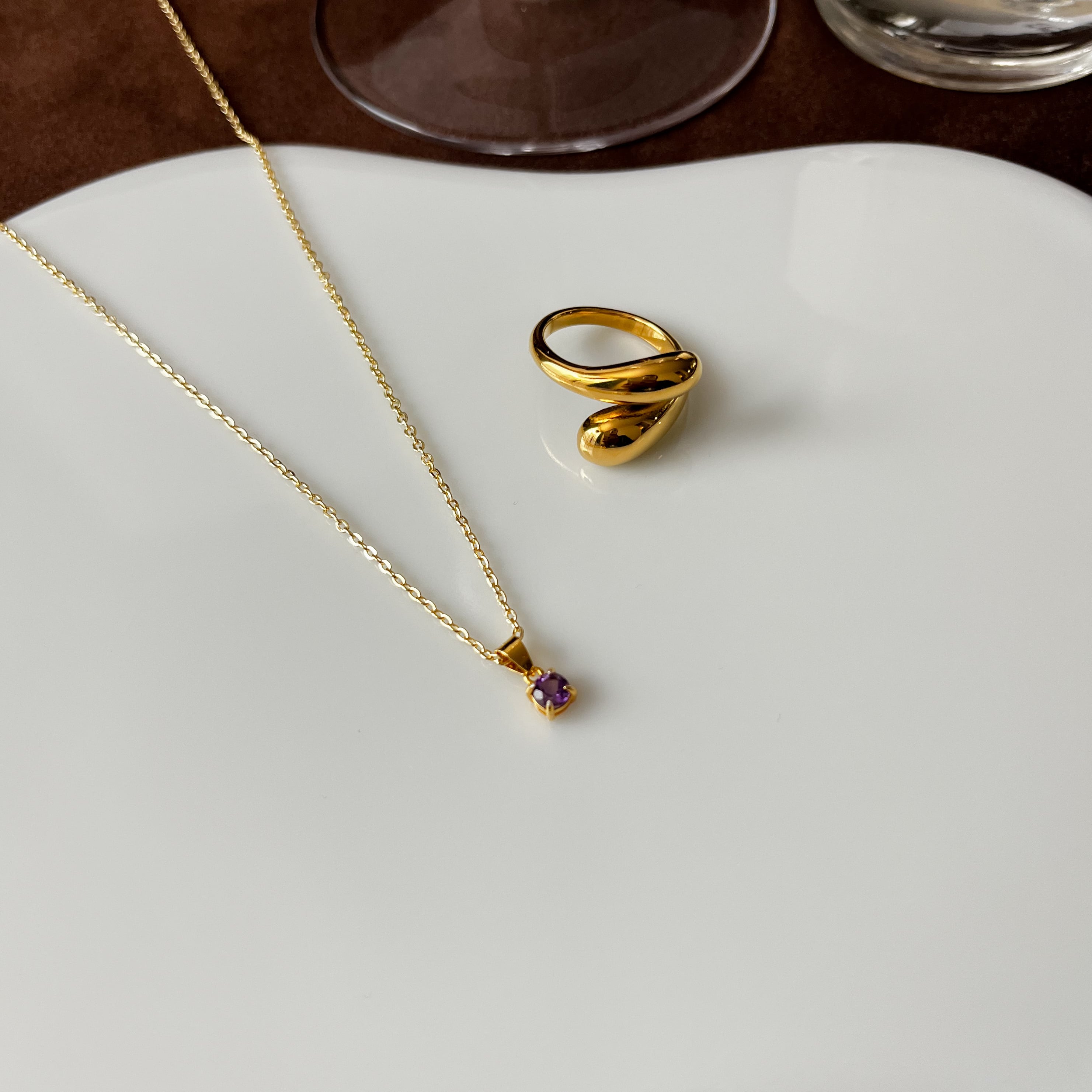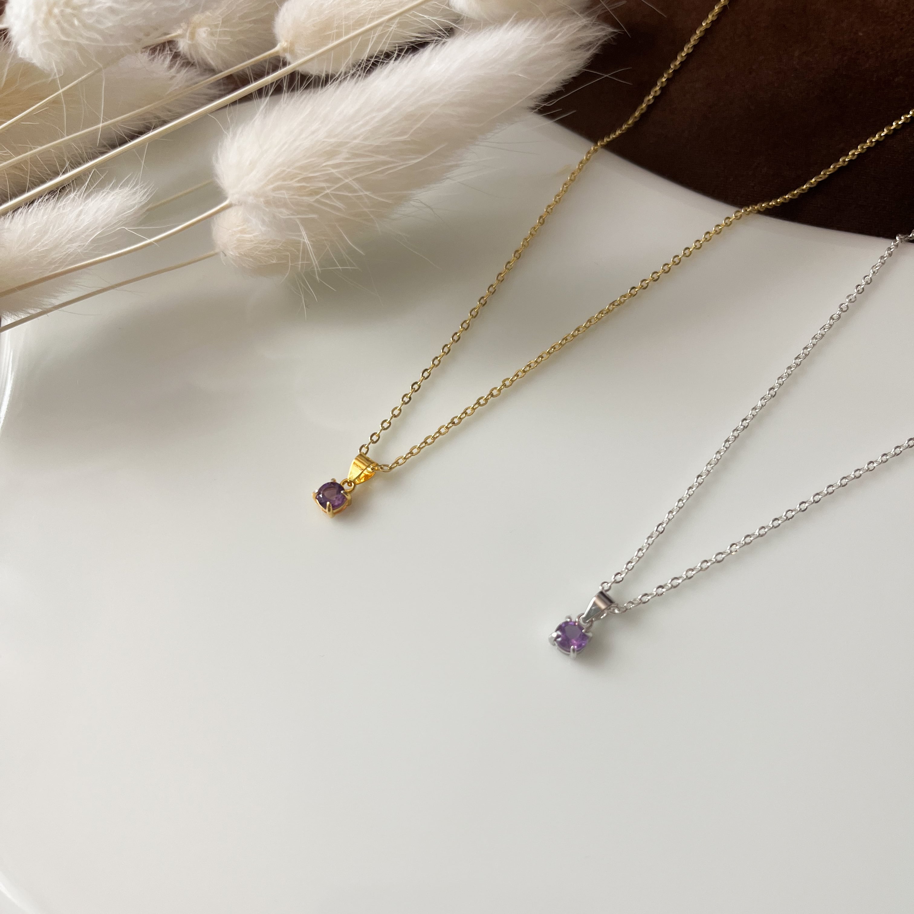 美しい紫のカラーと透明感が神秘的なアメジストの天然石をセットしたネックレス。